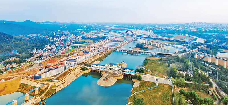 引江济淮工程是我国172项节水供水重大水利工程之一,也是集供水、航运、生态于一身的民生工程。工程以城乡供水和发展江淮航运为主,兼顾农业灌溉补水、改善巢湖及淮河水生态环境、排涝等综合利用,是跨流域、跨省的重大战略性水资源配置工程。图为引江济淮东淝河闸枢纽工程。 水利部供图